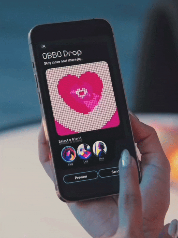 Brighten your loved ones' day with OBBO Drop. Send fun, animated emojis straight to their OBBOTO, sharing joy, emotions, and a touch of magic. Because sometimes, a little emoji says it all!